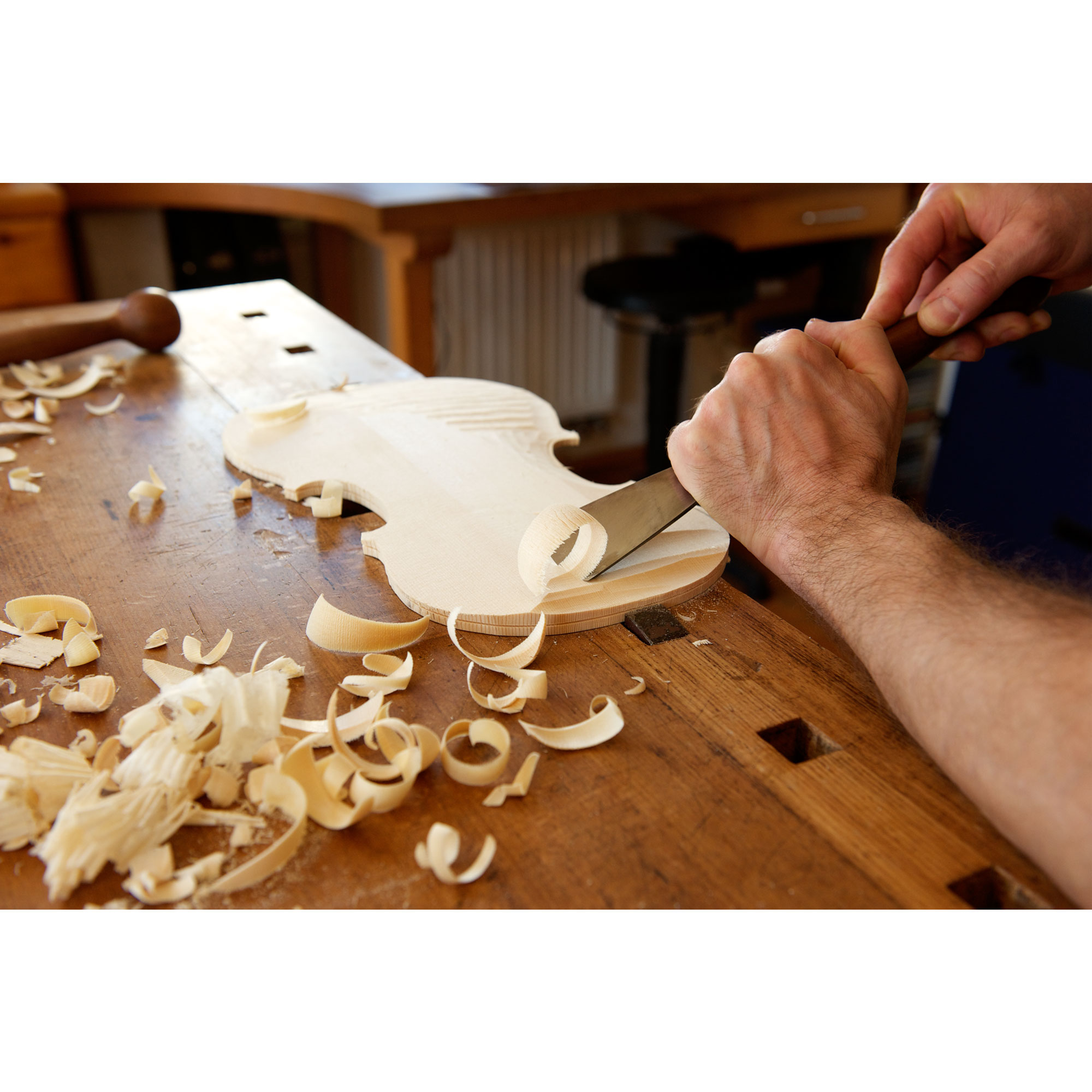Der Geigenbau ist eines der letzten "echten" Kunsthandwerke, d.h.: alles ist reine Handarbeit. Nur so ist es möglich, auf jedes Stück Holz individuell einzugehen und ihm entsprechend seiner Wuchseigenheiten die richtigen Stärken zu geben.