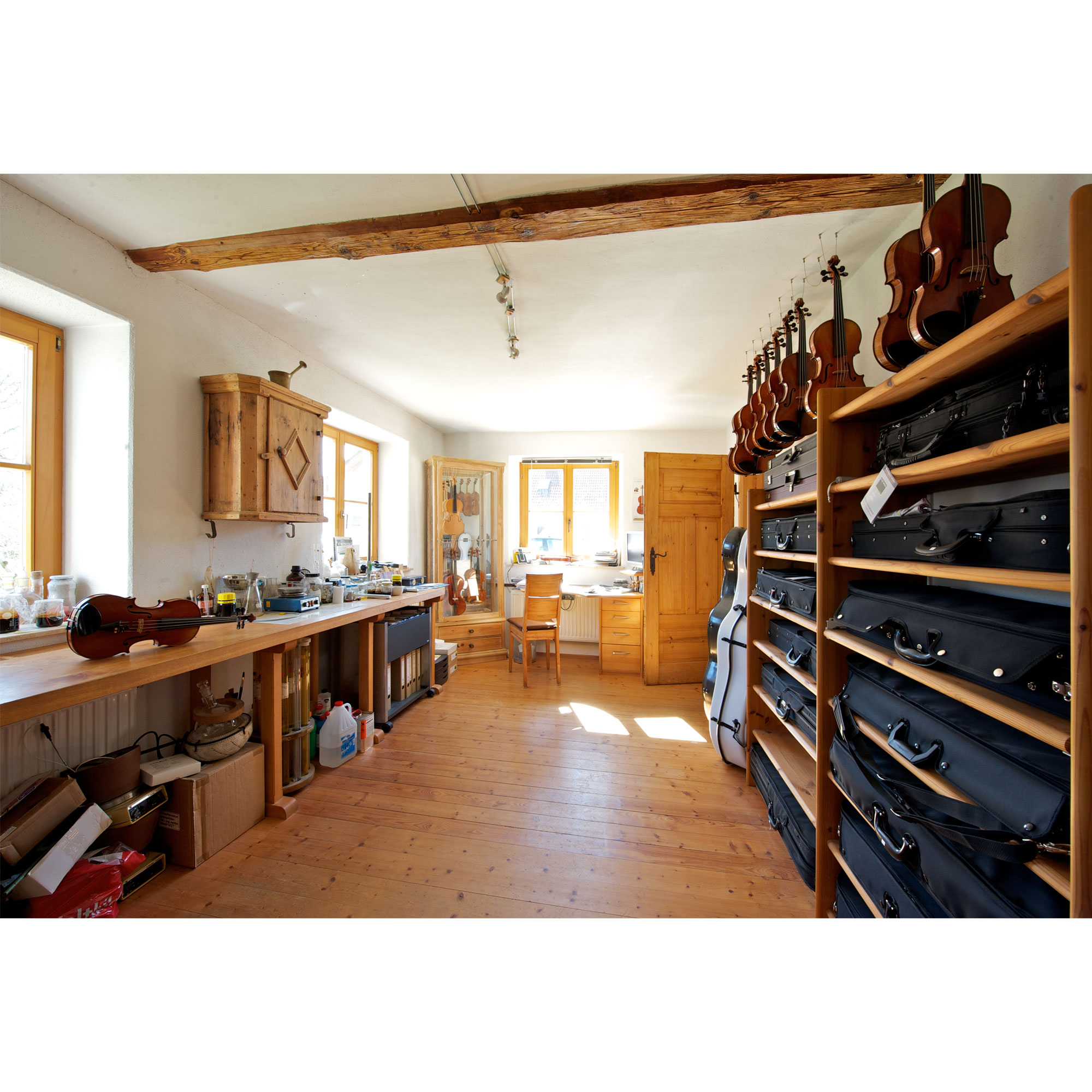 In unserer Werkstatt entstehen hochwertige Geigen, Bratschen und Celli nach traditionellen italienischen Vorbildern. Außerdem bieten wir den gesamten Service rund ums Streichinstrument: Klangeinstellungen, Reparaturen, Instandhaltung.
